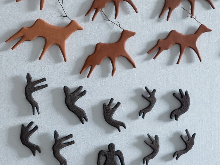 This work follows the origins of Céim an Fhia, a place-name outside my home village of Ballingeary. The story is centred around a deer who leapt over a narrow valley to escape a raft of hunters and carried on around 3 neighbouring mountains which subsequently are named after the events that took place on each of them: Dubhchoill, Damhas and Séithe. Through ceramic, video projection and sound this installation captures the landscape, the human interaction of imagination and oral tradition, showcasing these unique aspects of human nature and Irish culture.