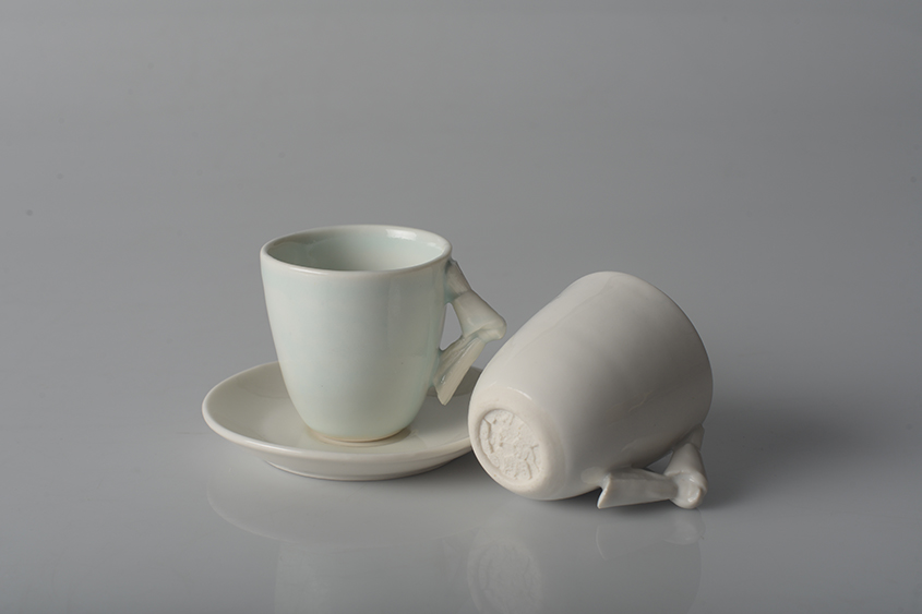 Coming to ceramics from a background in rush-work and basketry, my functional work aims to combine these two concerns, with the impermanence of the rush-work contrasted by the permanence of porcelain. The natural forms created by the rush bundles, organic and transient in nature, leave a fossil-like record once translated into ceramics.