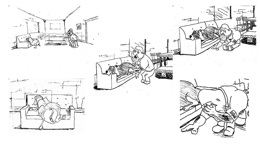 For my fourth-year degree project, I have developed a one off 2D/3D short Animated film designed to give a quick glimpse into a typical day of ‘Monty’s’ life. ‘Monty’ is a postman who has had a series of upsets in recent times and here in his apartment at the end of a long day he has yet one more challenge to face, his disobedient dog ‘Albert’.