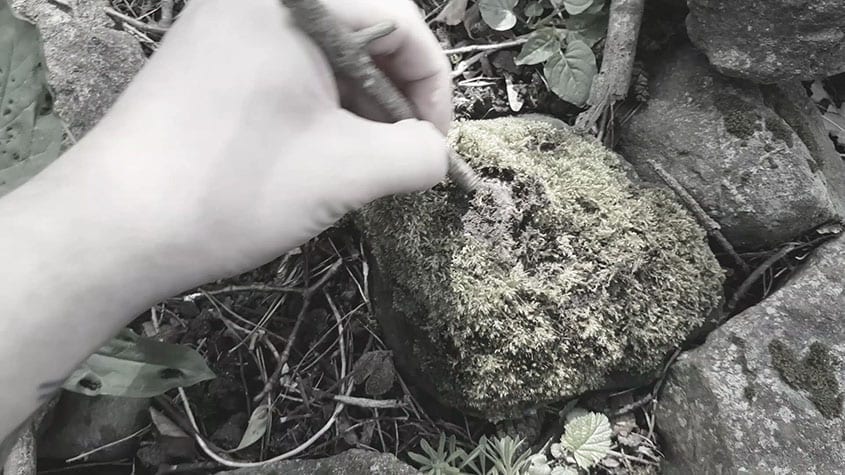 The work consists of human interaction and manipulation with the landscape, through the repetitive ritualistic action of drawing. It plays on the idea of past, present and future and explores responsibility and involvement  in terms of destruction and creation. The work explores the symbolic relationship between mythology, storytelling and the environment.