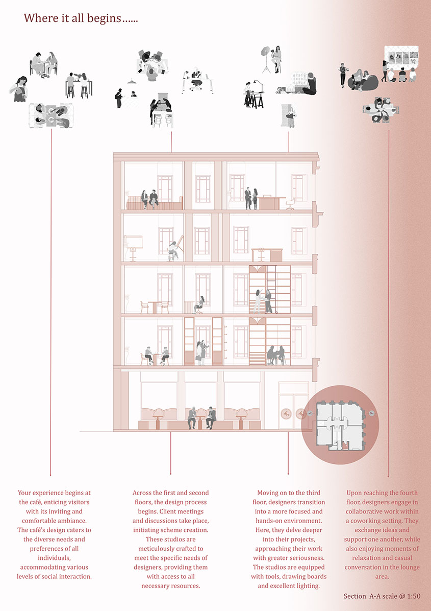 With a ground floor housing a café for retail purposes, the upper floors provide access to the studio via a side entrance or through the café, ensuring convenience for visitors. Each studio room is outfitted with versatile materials and brands to accommodate diverse design projects, empowering designers to push boundaries and unleash their creativity. Through this endeavour, the goal is to cultivate a vibrant community where innovation thrives, ultimately enhancing Ireland’s design scene.