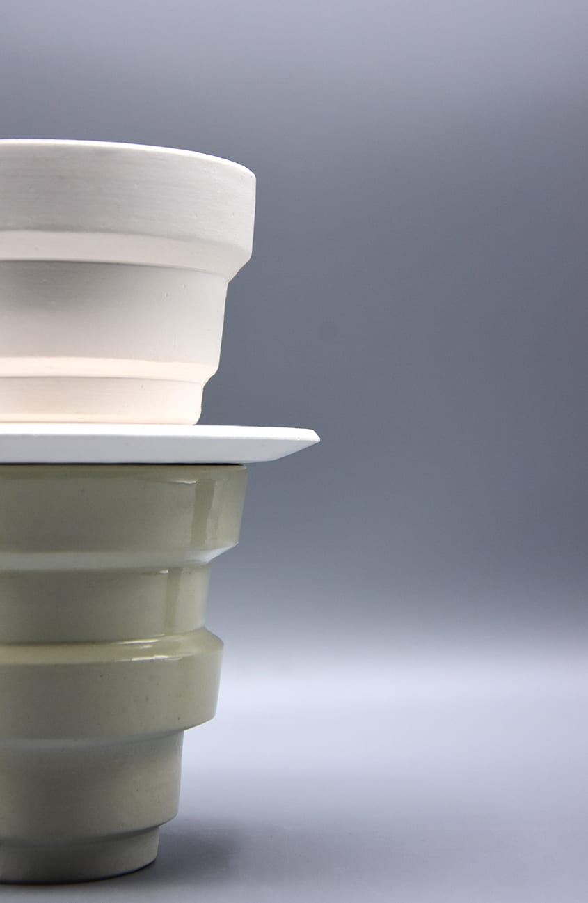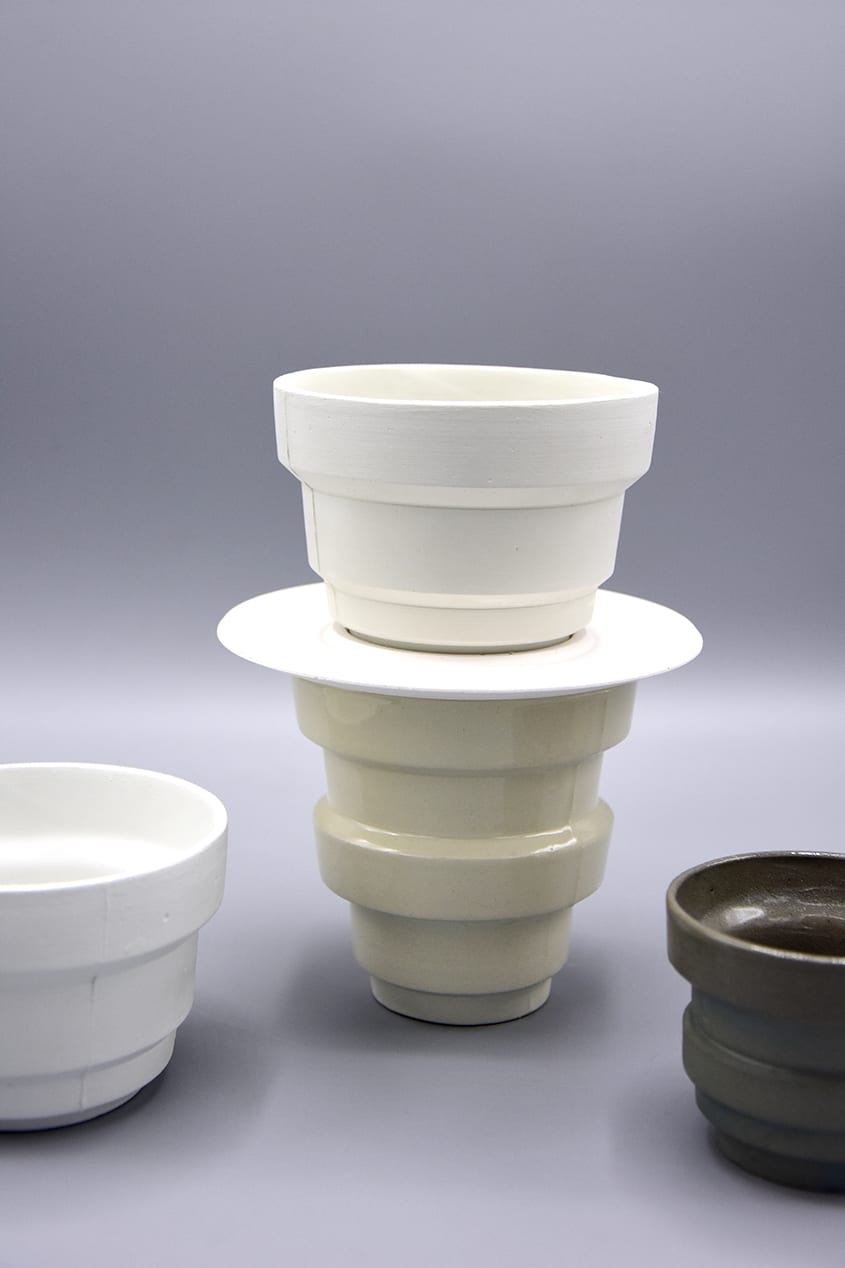 I produce utilitarian tableware, designed for use in the home environment. Stackable sets that become architectural compositions in themselves, pushing the boundaries of function through the recognised Brutalist characteristic of being ‘top heavy’.