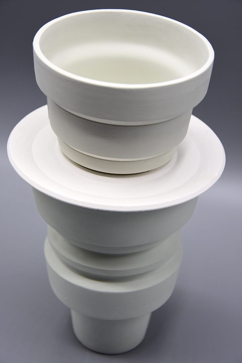 My work embodies the brutalist aesthetic, where the materials and processes are enhanced rather than hidden. Brutalist buildings are cast in-situ, with seam-lines left visible and the concrete raw. The parallels with ceramic casting processes provide the opportunity to explore this aesthetic on a domestic scale.