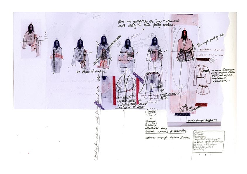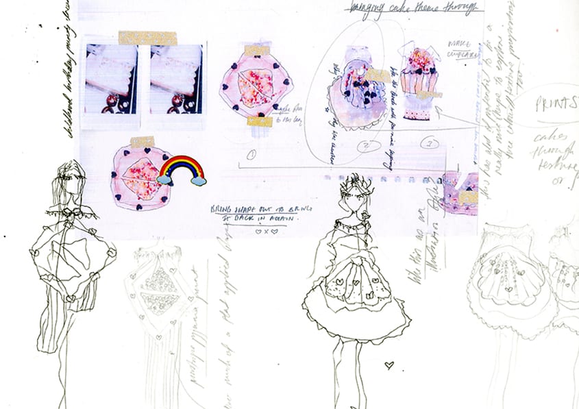 ‘Nevermind’ is a six piece collection based on the iconic imagery surrounding Kurt Cobain and Courtney Love’s 1992 wedding in Waikiki, Hawaii. I aimed to bring together through colour, texture and silhouette, the elements of their status as grunge’s royal couple, and hints of childhood dreamscapes seen through their home videos of birthday parties, cakes and celebrations. The collection is compromised of pajama striping fabrics, a combination of denim and deconstructed denim garments, combined with frothy knit and frilled textures to carry through the lighter elements and sorbet hued memories of past celebrations.