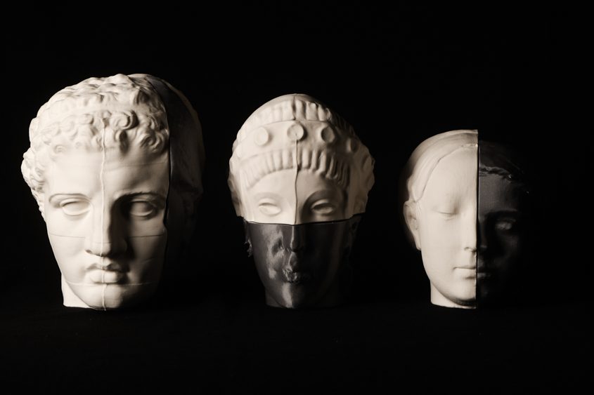 Using my own portrait to represent a generic contemporary figure, digital scanning and photogrammetry are used to cut and intersect this contemporary image with the historical artefacts. I embrace the blurring of identity, exploiting the subtle adjustments brought by the various processes, such as change of scale and evidence of method used.