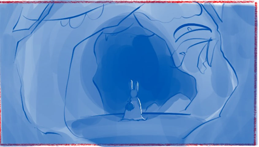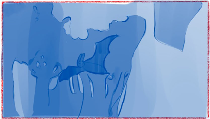 Fruitless is the story of a baby bat learning how to grow up. He lives in a tree hollow with his Dad, but he’s too afraid to ever step outside the safety of his home. When they run out of food it’s up to Daddy Bat to leave and find fruit for them to eat. Daddy Bat has warned Baby Bat that he won’t always be there to provide for them and that Baby Bat needs to learn to look after himself, but he never listens. When the baby bat wakes up one day to find his Dad has gone missing, he is faced with a choice – hide and hope his Dad finds his way home before the food runs out, or face his fears and brave the world outside his tree.