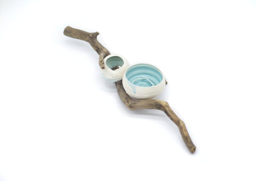 The resulting objects follow the grain of grief, integrating the knots of the impossible days, exposing the layers of memory and acceptance, and aiming towards a reflective balanced path forward. Working intuitively, they overcome the limits imposed by grief and physical obstacles creating precious reminders of the journey so far.