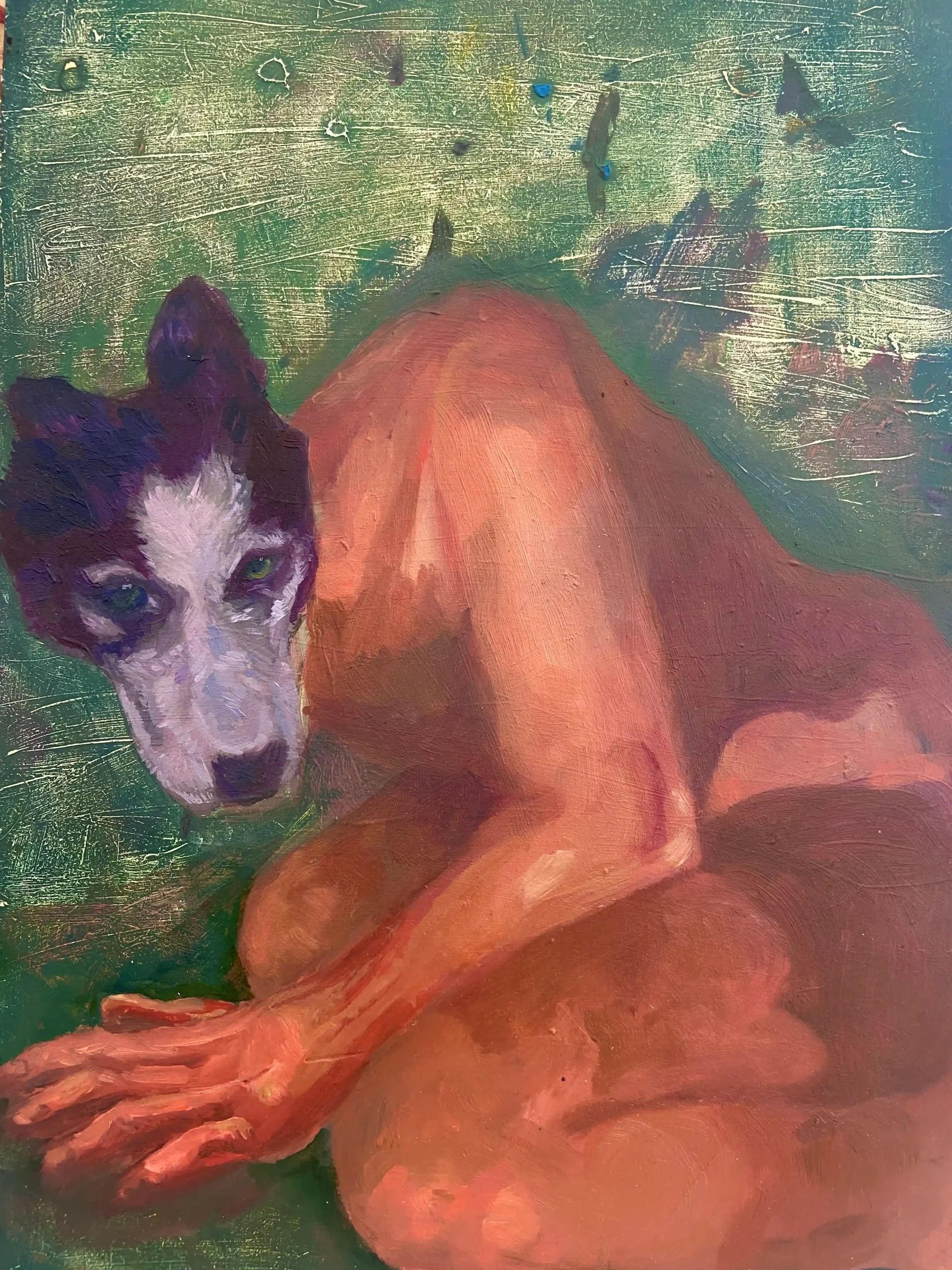 Exploring the myth of Cú Chulainn, by reimaging him as a hybrid of a human and dog form. This project was focused on exploring the state of Irish identity through arguably the most patriotic symbol of the island of Ireland. Cú Chulainn, as a symbol of the endless protector of all, was co-opted by Unionist and Republicans and countless other movements and groups. Using this idea of a symbolic dog stretched thin across ideological divides results in him not really standing for much in the end. Critiquing the overuse of Cú Chulainn as a Symbol has led to turning his symbol into a literal “shaggy dog” story. This was the motivation behind the 2666s replacing the fearsome hero of Ulster, instead he is a needy Border Collie or a yapping little Jack Russel. The exploration of dog symbolism led naturally to the Cynocephalus, the mythological dog-headed species present in the writings of medieval Christian scholars. Saints such as St Christopher were being depicted as a Cynocephalus, leading to the Cú Chulainn emaciated hybrid being placed into a religious context in my work.