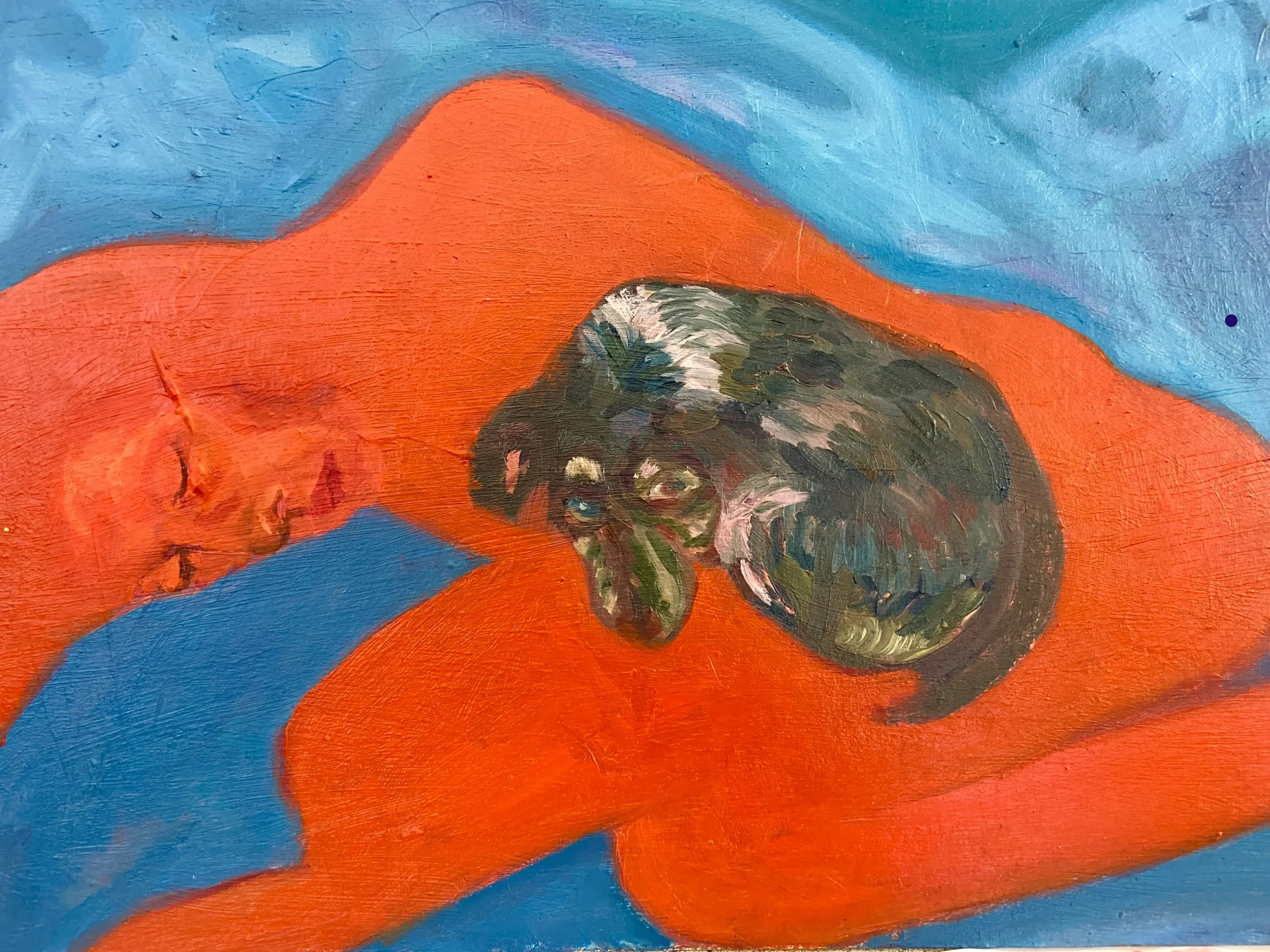 This triptych features the The Paps Mountain in Co.Kerry. The Paps are a representation of The Goddess Aine’s Body, which I have juxtaposed with a figure stripping.