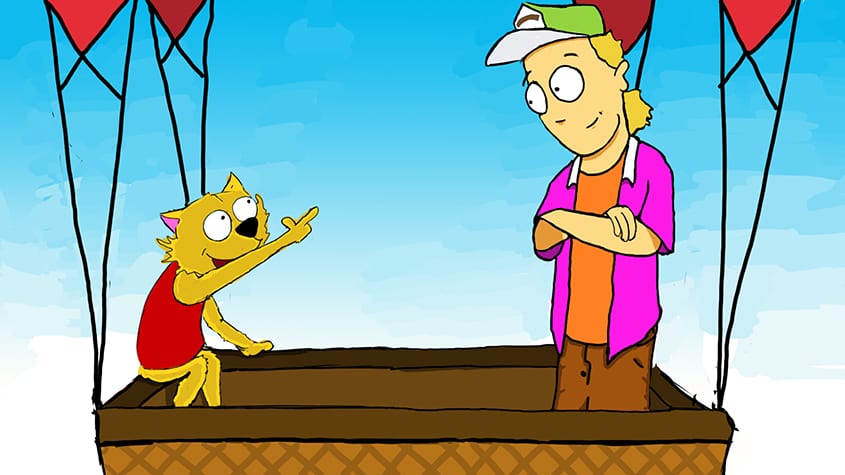 The main protagonist is Guy, a young adult who is still trying to find his place in the world. Suddenly the rug is pulled from underneath him and he is unexpectedly put in a situation where he is both physically and mentally lost. Up in the air and feeling hopeless, he is met with a rational voice of reason, Babbles. Babbles helps Guy separate his emotions from the situation – to rationalise events, and brings him to his feet again.