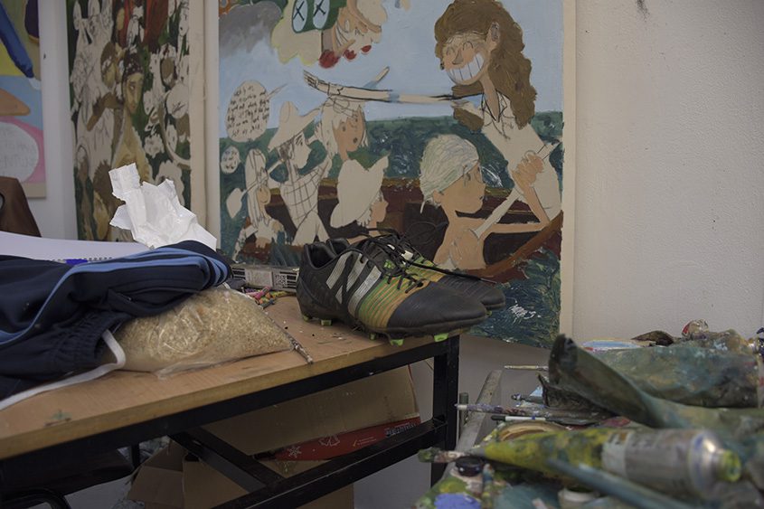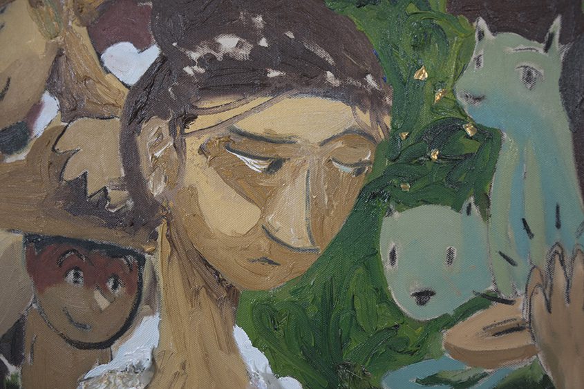 The work is oil on canvas, maniacally painted and carefully crafted by this villain’s cold calculating hand. A severe lack of art historical knowledge informs the work greatly and the artist allows his poor draughtsmanship skills to create boundless unclarity to engage a frustrated viewer’s imagination endlessly. A Loveletter to Life, The World and to You, My New Friend, is a labour of love and will be on display to the public from now until the end of time itself.