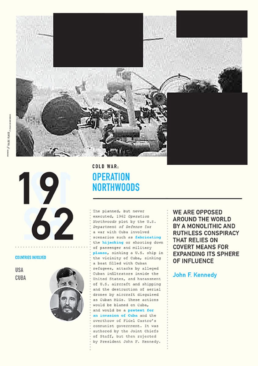 False Flags (or black flags) describes covert operations designed to deceive in a way that the operations appear as though they are being carried out by entities, groups, or nations other than those who actually planned and executed them. The name false flag has its origins in naval warfare, where the use of a flag other than the aggressor’s true battle flag as a ruse of war, before engaging the enemy, has long been accepted.