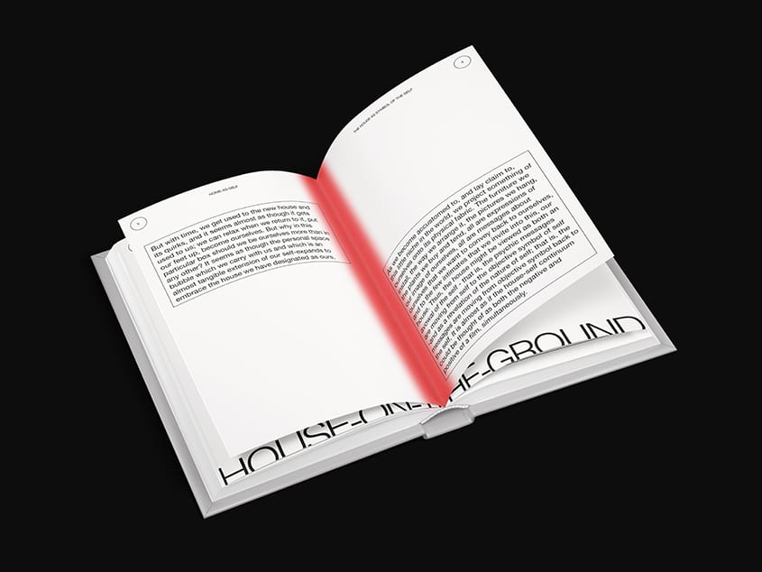 The book comes into a slip case which represent the exterior of the house and the mask that we use in public. The cover is a silver colour that reflects the face of the person is holding it, just as the house reflects the individual-self.