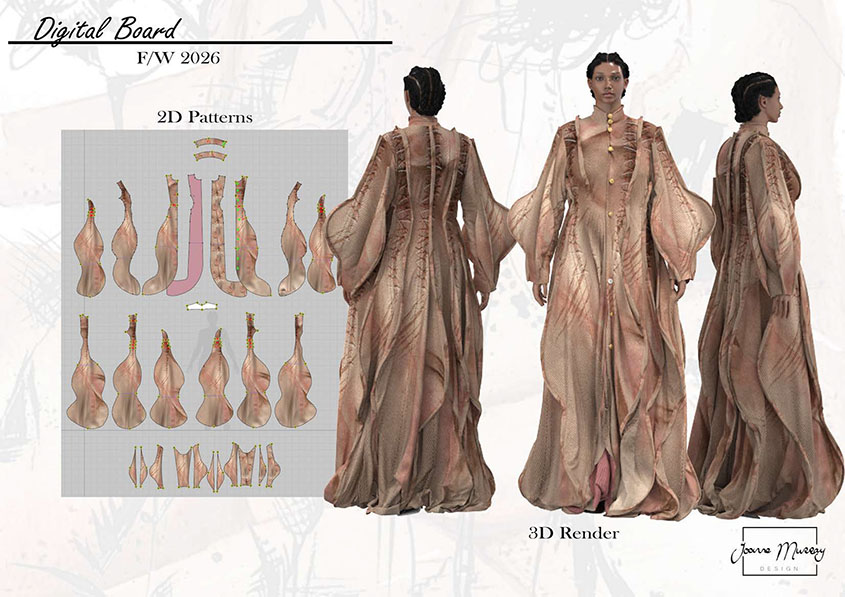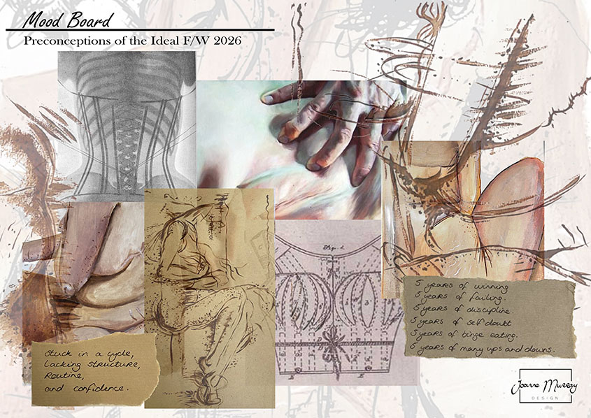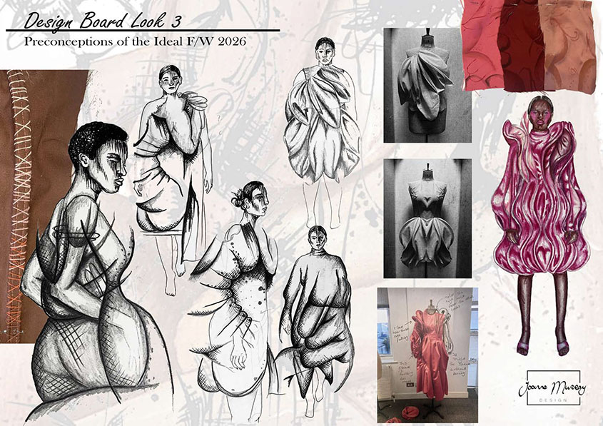 In a world where beauty standards often confine themselves to narrow definitions, my fashion design collection seeks to celebrate the natural beauty and diversity of the female form. Inspired by the intrinsic beauty found in the curves, lines, and textures, my journey began with an exploration into the relationship between fashion and body image, supported by my thesis ‘The Impact of Diverse size models on Brand Performance’.