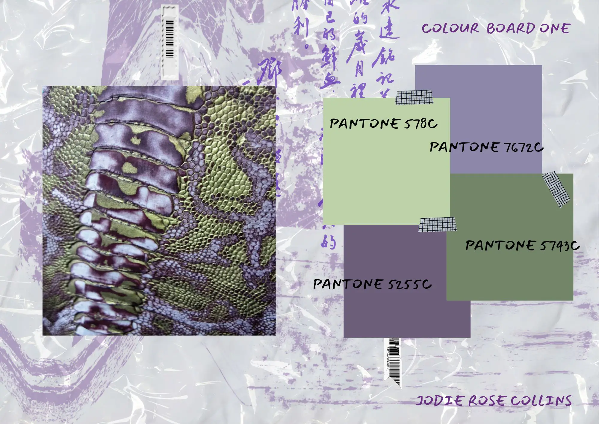 The palette-rich in purples, blues, and pale greens-reflects the scientific staining process, while reptilian and marine-inspired patterns evoke a hybrid of nature and otherworldliness. The garments blur the line between biology and art, reimagining the body as something both vulnerable and sublime.
