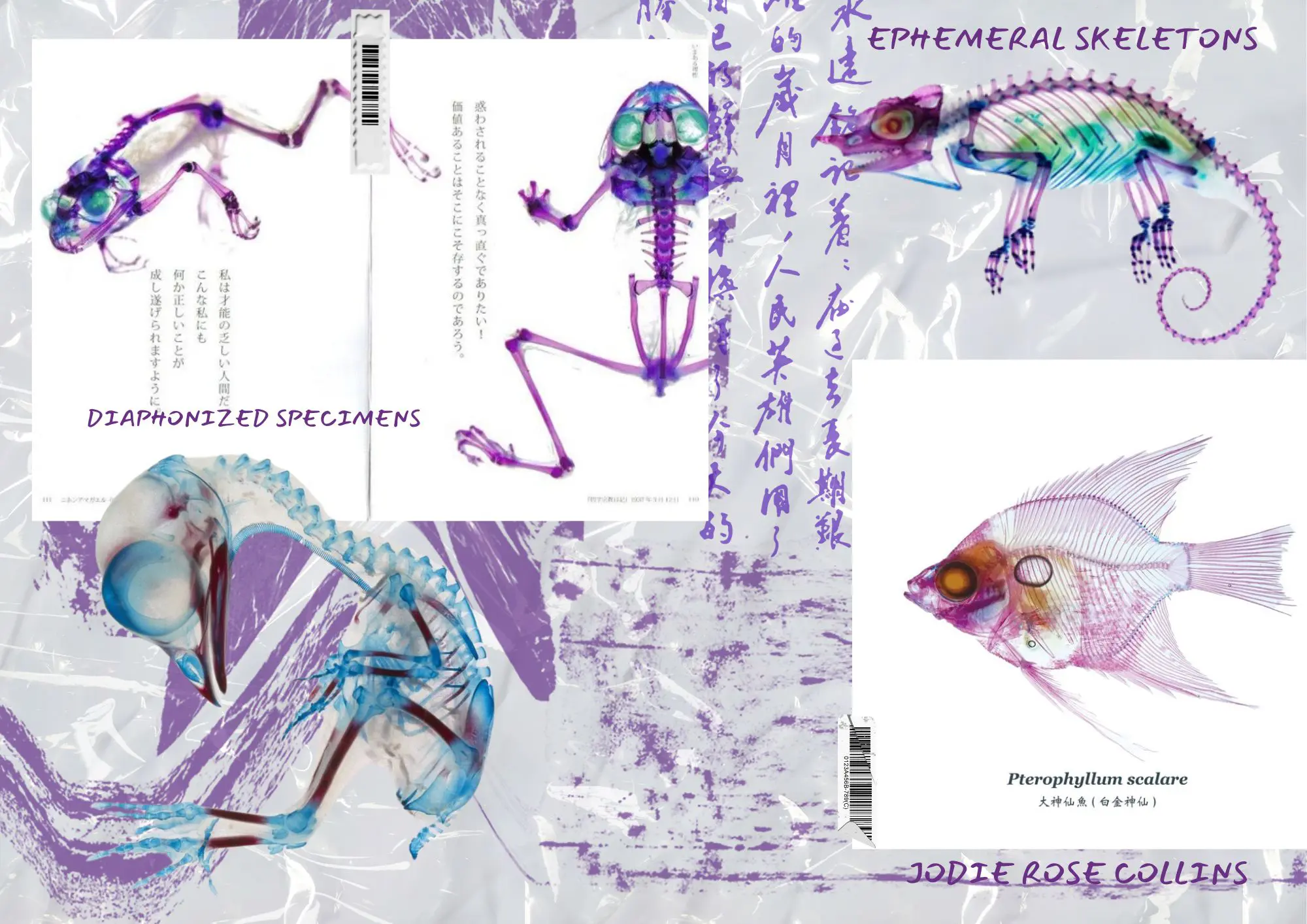 Ephemeral Skeletons’ is an alternative fashion collection inspired by the haunting visuals of diaphanized specimens which are animals chemically treated to reveal translucent tissue and vividly stained skeletons. These ghostly forms evoke themes of fragility, impermanence, and transformation.