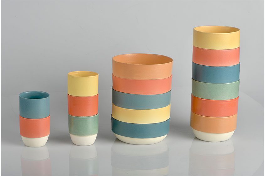 As a ceramic designer my work is primarily influenced by function and how objects serve us and our homes. The philosophy of my creative process can be described as “an appreciation of everyday objects.” It is my goal to enhance domestic environments and recentre functionality in these spaces.I follow a self-created set of design principles in order to achieve my aims. These design principles are stackability, interchangeability and versatility. I have designed and realised a collection of objects for everyday use, parred down to three multifunctional forms. These forms are intentionally kept simple and imbued with a playful colour palette rejecting the notion that simplicity ought to be serious.