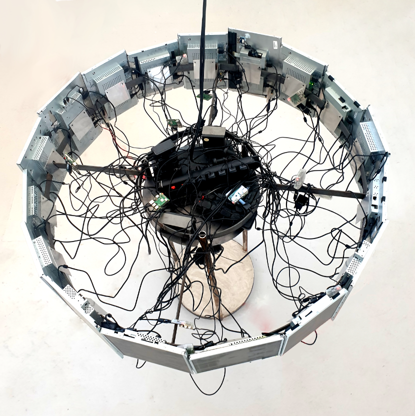 The piece reflects on the current state of the world, particularly the destructive ideology of perpetual economic growth. This drive for continuous expansion underpins many of the crises we face today. Increasingly, growth is no longer just material — it is manifested through data and communication. This obsession with growth harms us physically and mentally, while also accelerating environmental degradation. Ireland has become a global hub for data centers, a fact that influenced the conceptual development of this sculpture.