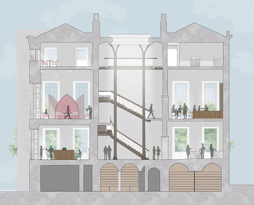 “Echo” transforms a neglected Georgian mansion into a vibrant social space, combining a bar, a hidden speakeasy, and restaurants. The chosen building is a protected structure located in Portland Row, Dublin. Inspired by the unfolding beauty of a daisy, the project breathes life into the forgotten space, aiming to captivate guests much like a blooming flower. The primary goal is to foster genuine human connection through intimate design, preserving architectural heritage while offering a contemporary yet timeless atmosphere. The buildings timeless elegance provides the perfect canvas for transformation. By countering digital distraction, “Echo” aspires to be more than just a venue for food and drinks; it aims to be a sanctuary where individuals can escape the fast pace and noise of modern life, reconnect with one another, and appreciate the beauty of human interaction. By infusing the space with warmth, intimacy, and a sense of intrigue, “Echoseeks to leave a lasting impression on its visitors.