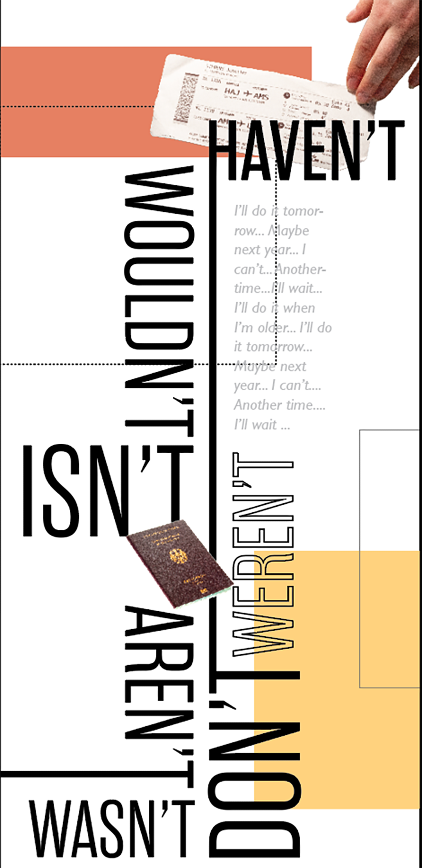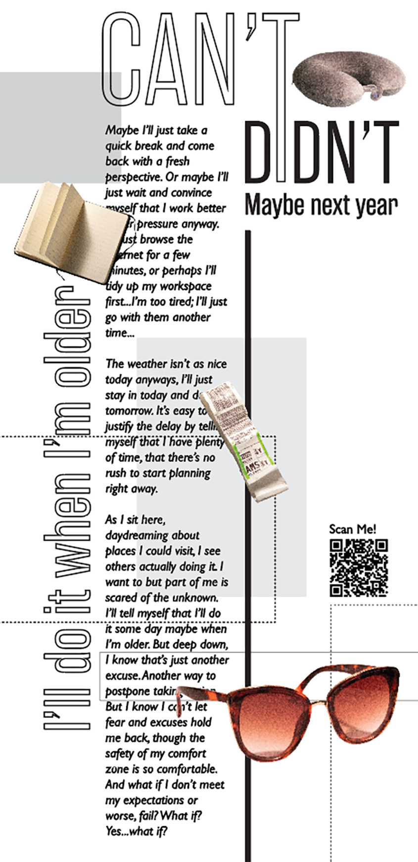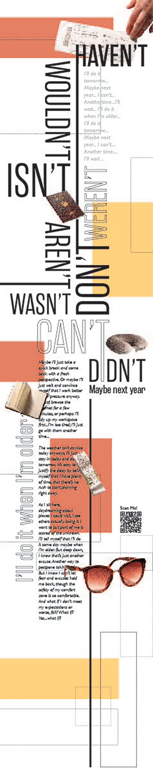 The concept transformed into a motivational piece addressing procrastination. A tall banner