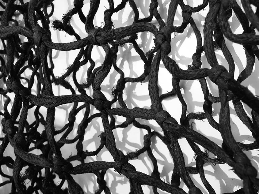 Focusing her attention on the areas of Spanish Point and Quilty, Kathleen Darcy collected and photographed remnants of rope and fishing nets that had washed in from the sea. These objects had degraded from the weather, getting tangled and entwined with the natural seaweed. It was hard to distinguish these elements, to the point where they were almost unrecognizable from the surrounding growth, much to the detriment of the wild life.