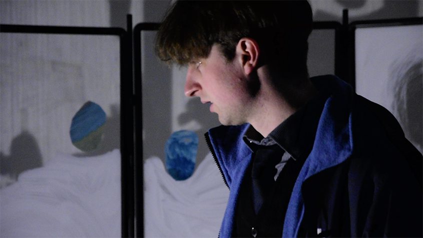 Originally from Roscommon, Katie became interested in theatre production after co-directing ‘A Midsummer Night’s Dream’ and facilitating ‘Union Station Theatre’ in 2022; a space for artists to perform through means of improvisation. Between embarrassing repeat-after-me songs and a group performance in Limerick’s train station; she began rehearsals for ‘Under The Weather,’ a show that borrows from Samuel Beckett, Marcel Dzama and Irish archival footage. It details the expedition of a desperate radioman, who in attempts to revive his radio show; wanders an island of weathered individuals.