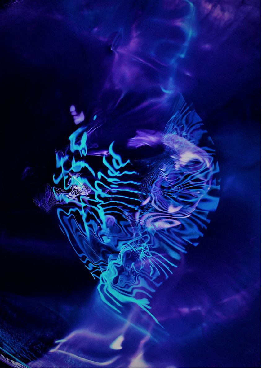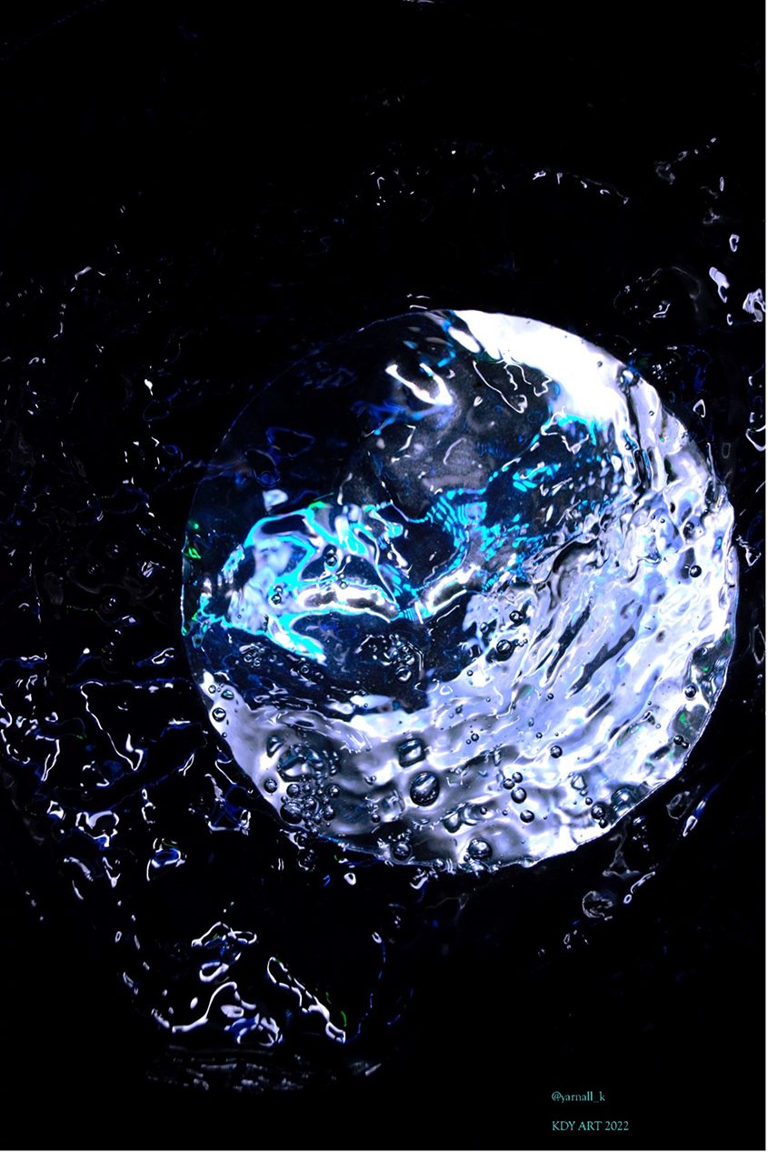 The aim of my project this 2022– degree show, will be to completely absorb the viewer or the audience. To an experience of the otherworldly an experience that I once had, which is the driven force to my artwork to date. My point is to capture the encounter, I endured once beneath the depths of water. Utilising light sources sound, installation, sculpture and visual images. I trust that the spectator has a feeling of being immersed on a journey through vortexes and doorways to otherworldly. My art ought to deliver the viewer a sense of being submerged, leaving them with a new view of water and its secrets perhaps, a connection to another world. Using water, light and a digital camera I have captured special abstract shapes and movement of colours in water. These organic images are unique and can only be compared to photoshop effects and apparatuses. Which once viewing my images you will find that the images are not digitally improved, they show the actual colours and are only adjusted marginally. My unawareness of water and its hidden secrets, the unknown of where it precisely comes from has made this project a journey of exploration for me. My artwork captures the mind of the viewer and another way to view the enchantment of water and this extraordinary unexplained life-giving source.