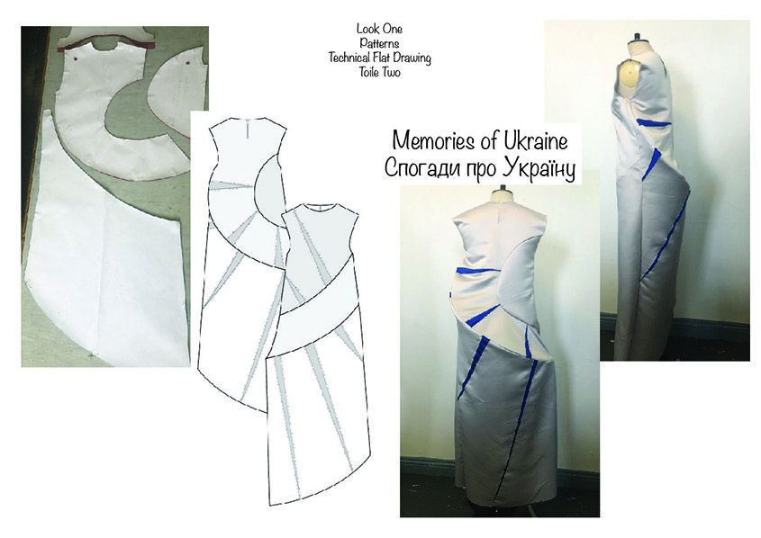 I drew silhouettes from vivid industrial and architectural objects I encountered during my time in Ukraine, recalling outdoor market stalls overflowing with hand-printed traditional designs. I was inspired by the patterns, colours and textures that speak to the authenticity of Ukrainian culture. Nodding to my childhood home and cherished teddy in the most descriptive elements of the collection, I hope to awaken the care-free, child-like persona in every spectator.