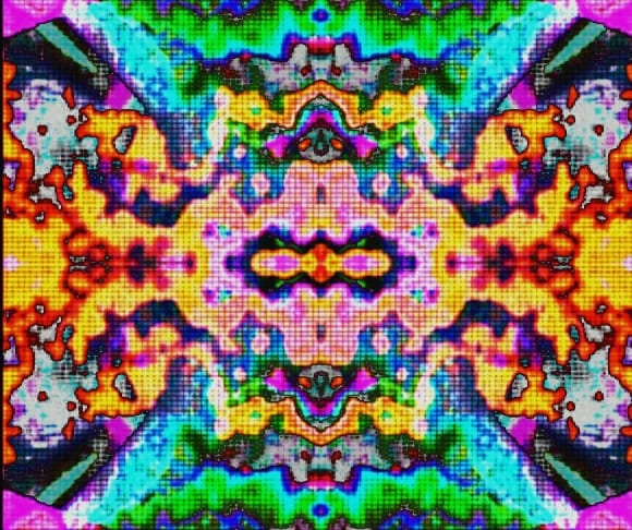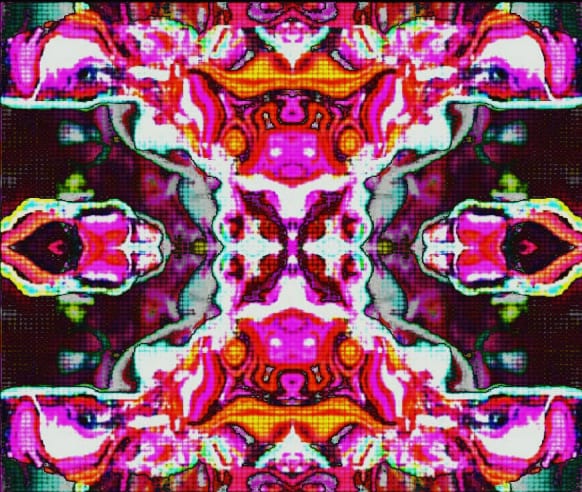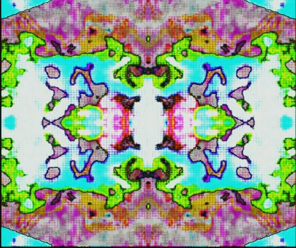 This is achieved through the use of digital technology – computer synthesizers, framebuffers and video feedback, which all have a lineage associated with rendering non-objective imagery. They form a synthesis – a combination of components which form a connected whole.