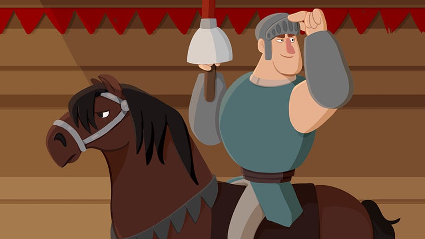 “Little Victories” is a tale about a small knight who dreams of being a jouster. However he is denied the chance to prove himself when he tries to enter a competition and is turned away due to his small stature. To fix this problem, he gets a potion from a wizard and is transformed into a bigger, stronger albeit clumsier version of himself and attempts to enter the competition again. Unfortunately, after his initial success in gaining access to the tournament, he transforms back to his original self. Using his small stature and quick thinking rather than the brute strength the other knights relied on he wins the match, proving he never needed the height and the muscles to do a job he already knew he could do.
