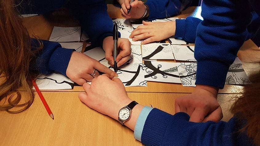 This research project aimed to examine the extent to which facilitated group discussions and problem-based tasks can support students to explore design solutions in response to a design brief. The project as set out tasked students to creatively engage with nature and develop proposals for a collaborative relief clay tile wall piece, such as the kind of design brief that would be commissioned by the county council. The overall concept of the project was to reflect the flow of the river and was outlined within the design brief. The students were presented with a series of problem-based tasks to facilitate them in responding to the brief. The tasks presented were (i) create an individual design in response to the design brief (ii) arrange the individual designs as a whole class (using facilitated group discussion) to form one collaborative design (iii) develop the whole class design (iv) realise the designs in air-drying clay.