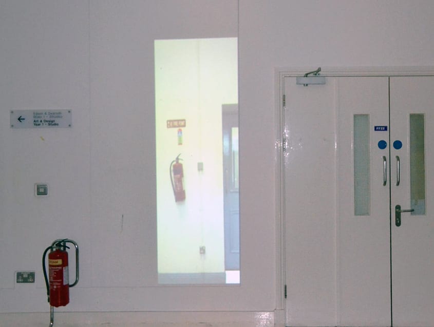 Leigh Francis’ interests lie in the passive spaces within a building. Francis uses replication of these banal areas, such as thresholds and hallways, to allow them to be encountered as they move throughout the building. Through the use of physical structures, sound pieces and projections Francis reproduced sections are placed in these passive areas displaying not only the sections of replication but the spaces itself, he is presenting to the audience more of the same, what is already there.