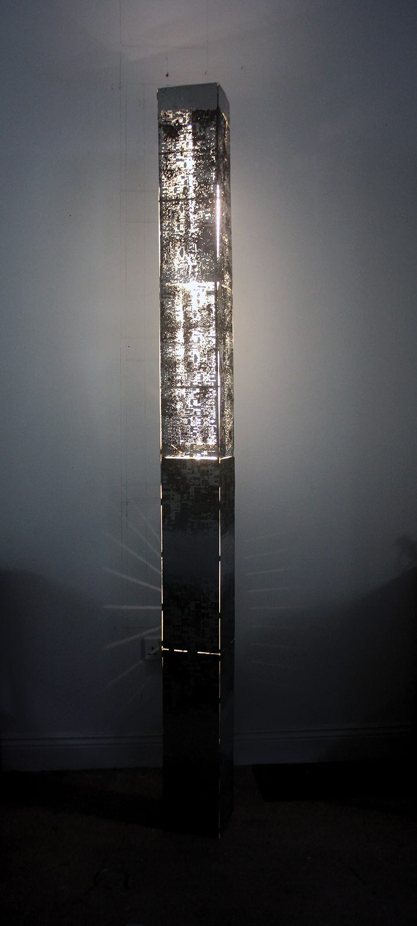 The title of the project refers in part to the Telescreen the mysterious surveillance device in George Orwell’s novel, Nineteen Eighty Four. The physical, mechanical and structural elements of electro-magnetic technology are apt totemic representations, because they are symbolic of an invisible, parallel element of human culture.