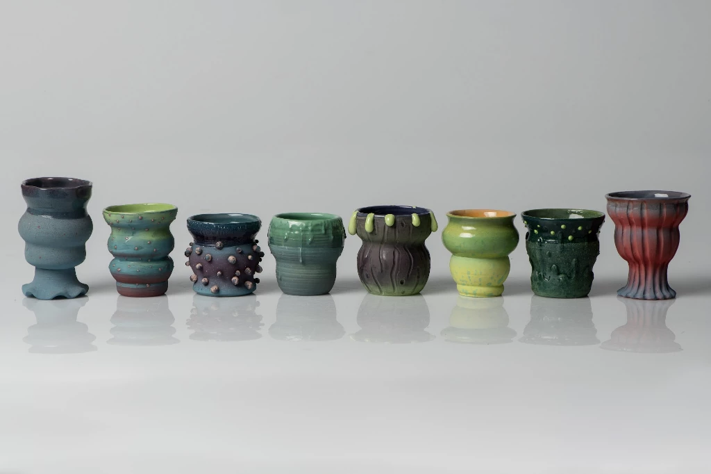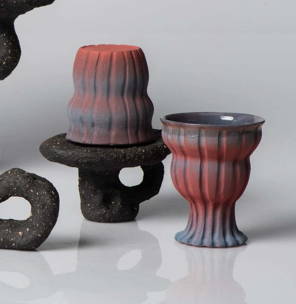 Although they take the form of cups, these pieces aren’t intended for everyday use. They’re not functional in the traditional sense. Instead, they are sculptural and ornamental objects that reference the cup shape but exist mostly for visual and conceptual exploration. I chose the cup as a starting point because it’s a familiar, relatable form, and I wanted to shift it from something practical into something more abstract and expressive, blurring the line between both function and sculpture.