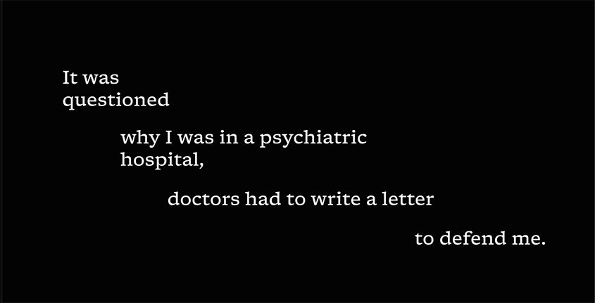 way. Kinetic type with anonymous statements on mental illness from the public convey the