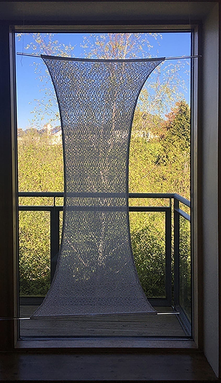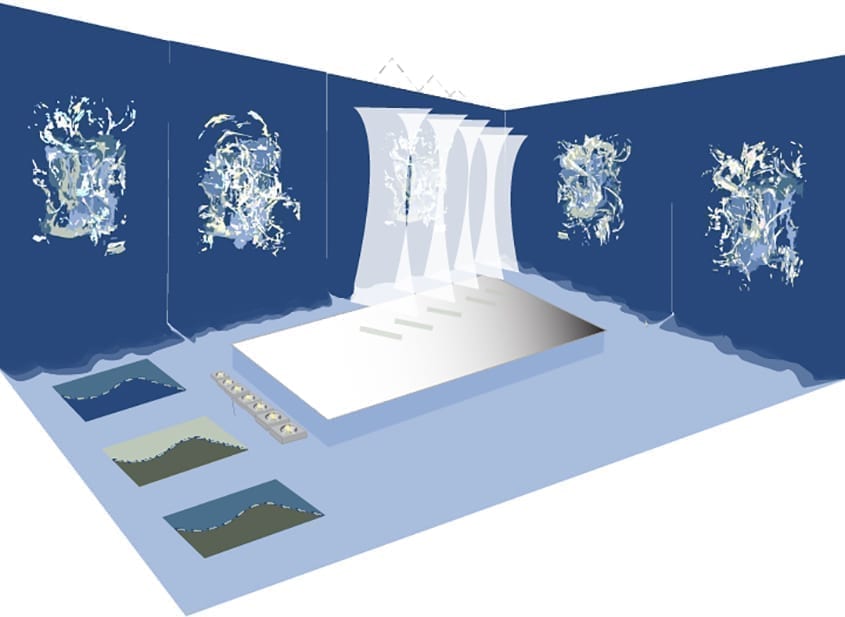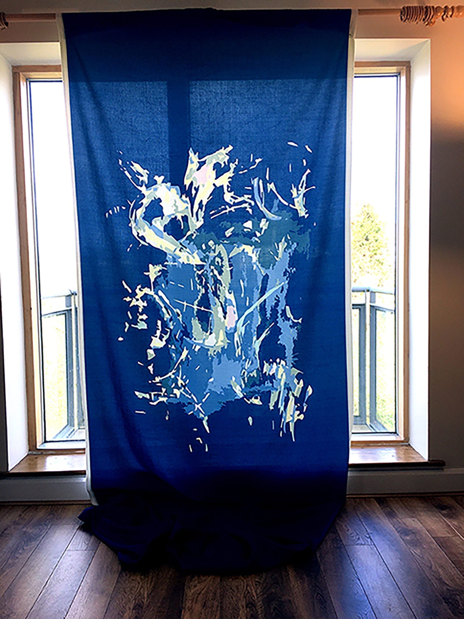 In this work I aim is to create a space where an individual can just be, a space which engages the senses. Sight is engaged through the patterns, colours and light. The soundtrack which accompanies the animated pattern projection is NASA’s sonification of a deep space image taken by the Hubble Telescope. It creates a pathway back to the foundation of the universe, the Big Bang. The mats are soft, felted and embroidered cloth encouraging the viewer to sit in contemplation in this space. An electronic diffuser emits the scent of Neroli oil which has a soothing effect on the mood.