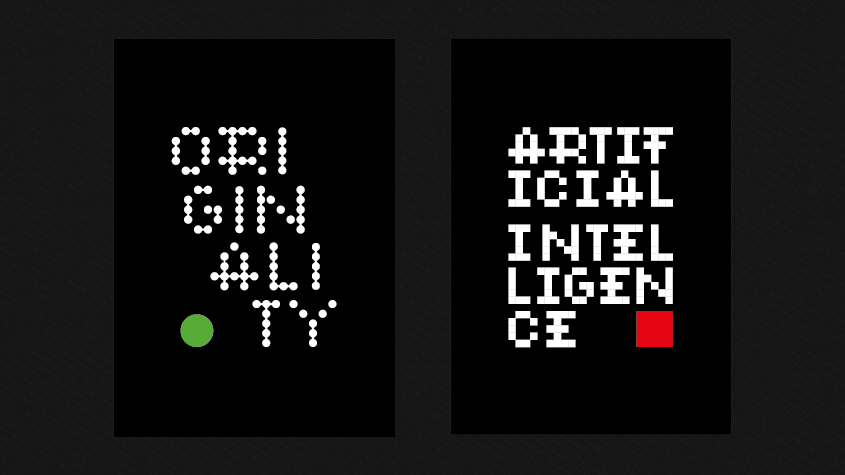 The installation deals with the effects of AI, especially generative AI, on the understanding of originality and its value in society. Originality serves as an indicator of independent, creative and unusual thinking. Artificial means man-made, not naturally occurring or a copy of something natural. Intelligence is defined by the ability to acquire and apply knowledge and skills.