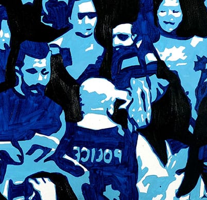 The artist explores the existential crisis allowing people to come face to face with images from violent historical events, recall them and think about those innocent lives lost. By altering the colour and minimalizing the detail in each, these harsh images like depictions from 9/11 and Syria. They become more appealing to our senses allowing viewers to be drawn in to remember such events and gives those affected the attention and respect they deserve. Maeve Hitchen’s work implicates the viewer to observe and make their own connections.