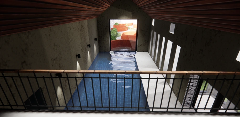 The design concept is inspired by the fluidity of water and the grounding presents of nature. Soft curves, natural materials, and expansive windows frame the surrounding landscape, promoting calm, clarity, and healing energy.