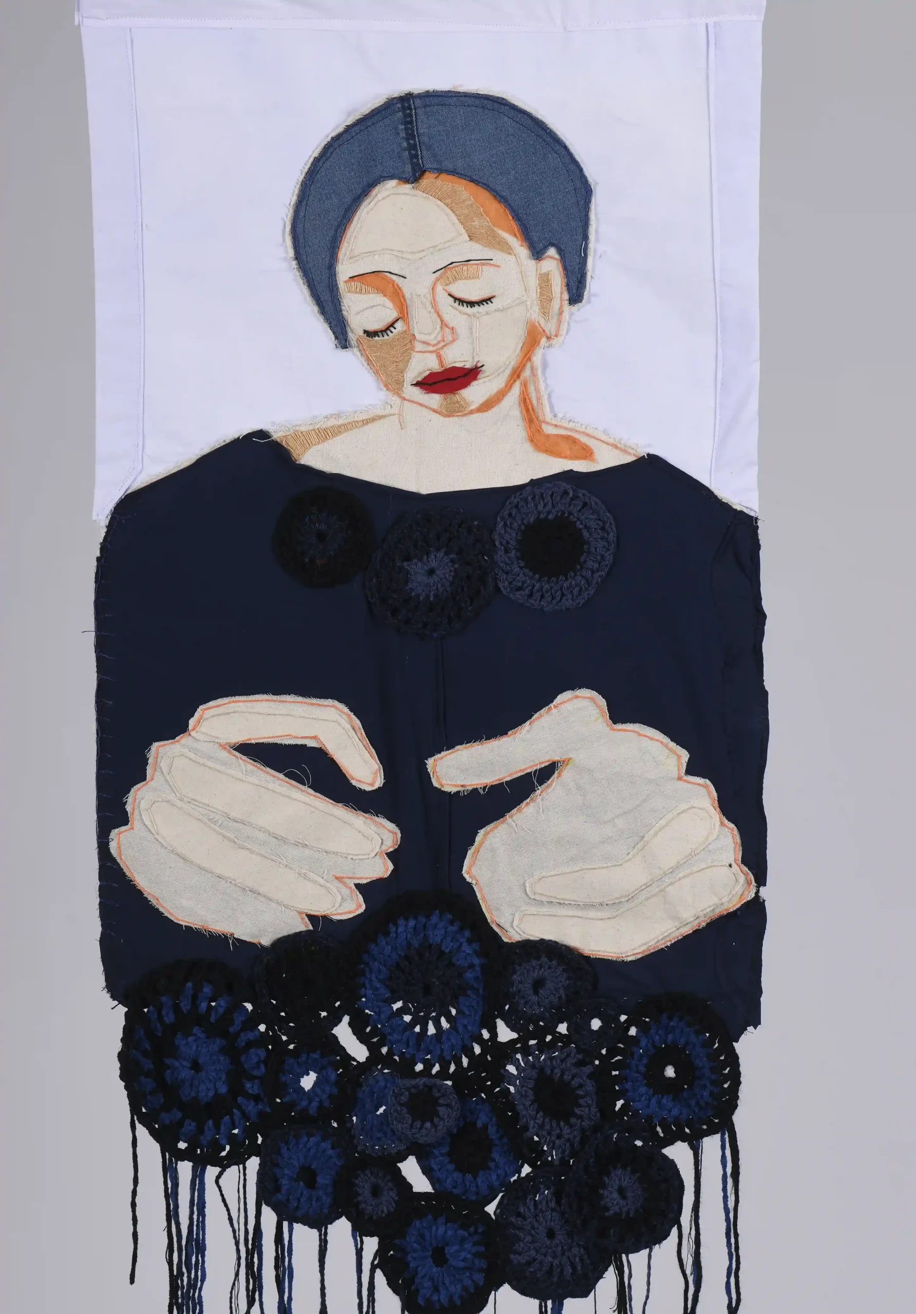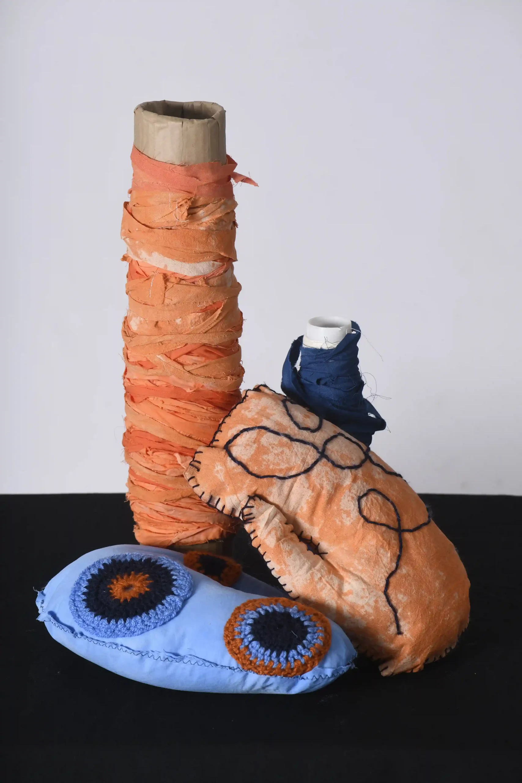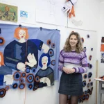 The project consists of tapestries that combine some found material and some material that she has been collected in charity shops. Mairead experimented with dying processes to create some of the colours in the textiles.