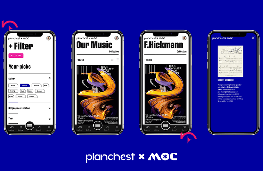 The Michael OConnor Poster Collection is an eclectic gathering of international posters of historical and cultural significance. The poster Collection comprises approximately 2800 posters of international derivation and was donated to Limerick City Gallery of Art in 1989. As part of a group project, Amy Kenny, Hannah Ross and I executed a plan formulated from extensive research, both design and contextual. The main problem identified was that many posters could not be displayed. In response to this issue, we created the website Planchest X MOC. Planchest is a virtual collection containing thousands of unique unarchived posters. The brand can expand to other art collections worldwide and isn’t limited to the MOC collection. As a result, prompting more artistic collaboration and reaches a broader audience. Our concept is a unique visitor trail experience, which allows for endless discovery and exploration. The website’s navigation and features are easily accessible to many audiences, creating a community of Planchest miners. Along with the entire poster collection archived and an extensive filtering system, Planchest includes elements like ‘Our Music Collection’ and ‘Our Weekly Podcasts’, emphasising the brand’s versatility. Bonus features include hidden messages attached to posters and your treasure chest, where you can archive your favourite gems.