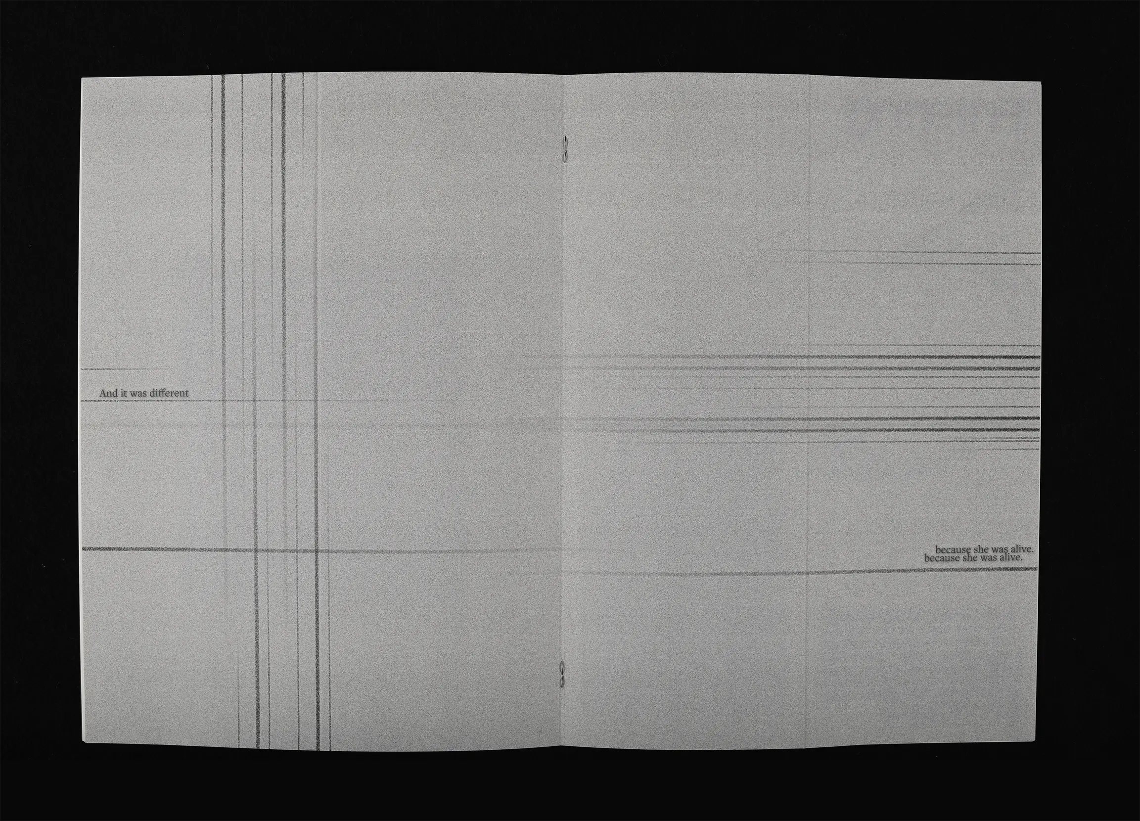 The book is laid out with a triple fold, which can be read folded or opened, creating an interactive experience that reinforces the theme of transition and uncertainty. The structure of the book itself becomes a metaphor for the liminal experience, inviting the reader to engage with shifting perspectives and layered meanings.
