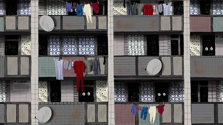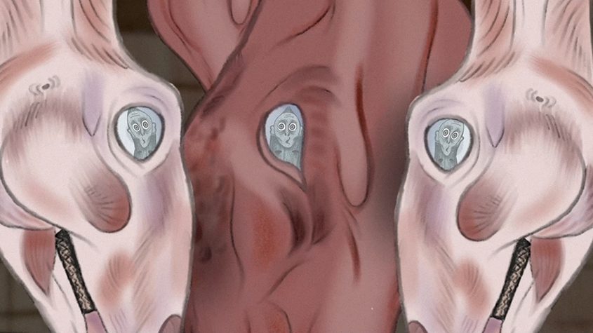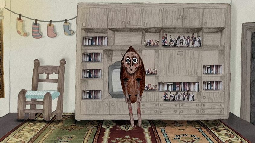 Shot in a 2D cut-out style with many of the backgrounds being hand drawn and digitally coloured. Some real images were used in this animation to give a sense of the character losing grip with reality and being unsure of what is real in his world and what is not.
