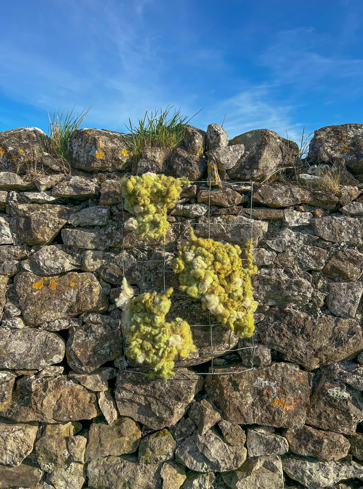 Growing up on our family farm in the west of Ireland, I developed a real appreciation for the land for its produce and beauty. The strong connection to the land has been passed from generation to generation, a true grá. I gravitated initially to a solid man made material, steel, at first using our farm maps as a starting point. I then gravitated to a familiar natural material – sheep wool. I washed and dyed a raw fleece myself and used this to further depict our land. It’s softness yet resilience. Nurturing life, physically and spiritually.