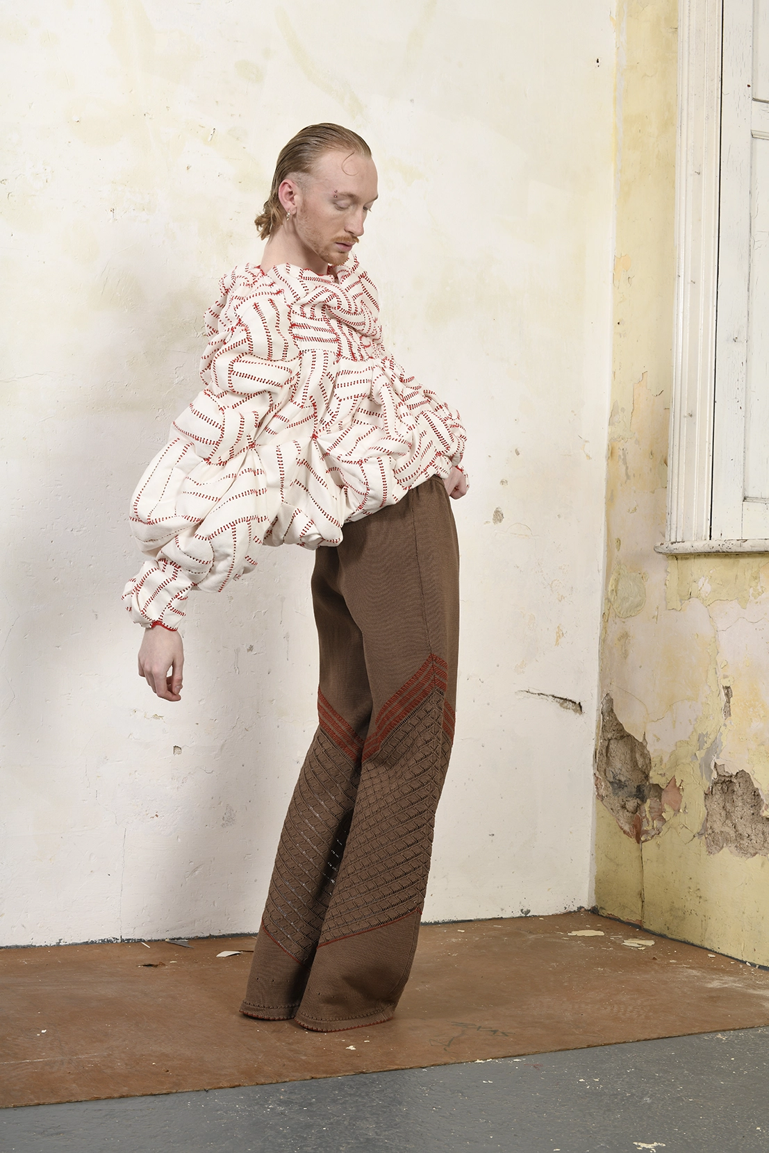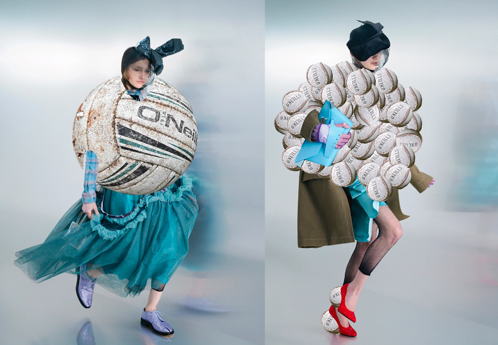 Méabh’s collection is inspired by the heritage and community of the GAA, with a focus on traditional footballs and sliothars. The construction of these balls form the basis of the garments. However, instead of being assembled in the usual way, the panels are reimagined and connected in unconventional, innovative forms. Rooted in sustainability and guided by zero-waste principles, the design process centres around reusing discarded materials that carry the visible marks of use, and deep cultural meaning. The collection not only honours Irish tradition and storytelling, but also challenges the wastefulness of modern fashion offering a circular, thoughtful alternative grounded in both heritage and sustainable design.