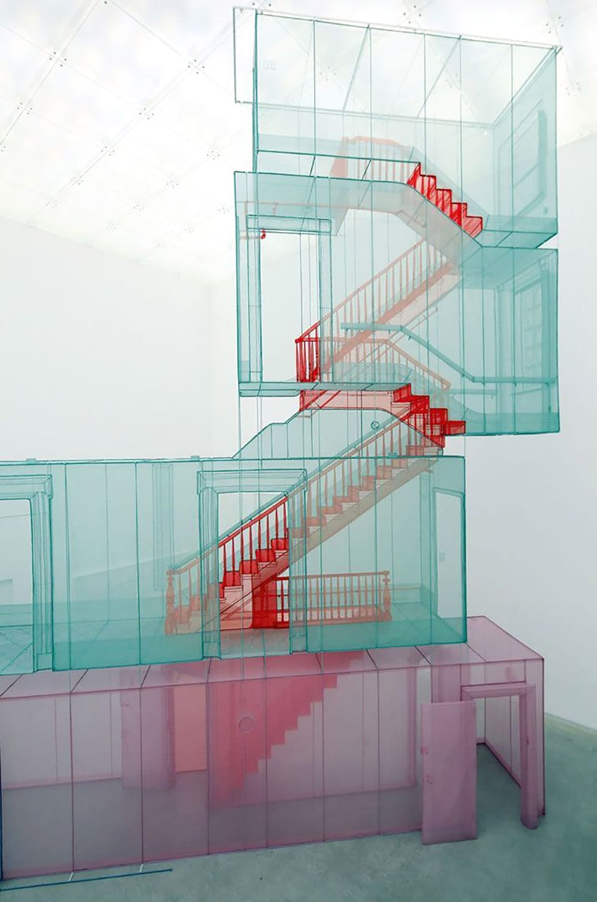 of the staircase to represent the journey of life. The collection is constructed in a combination of bonded woven fabrics, bonded synthetics and moulded acetate.