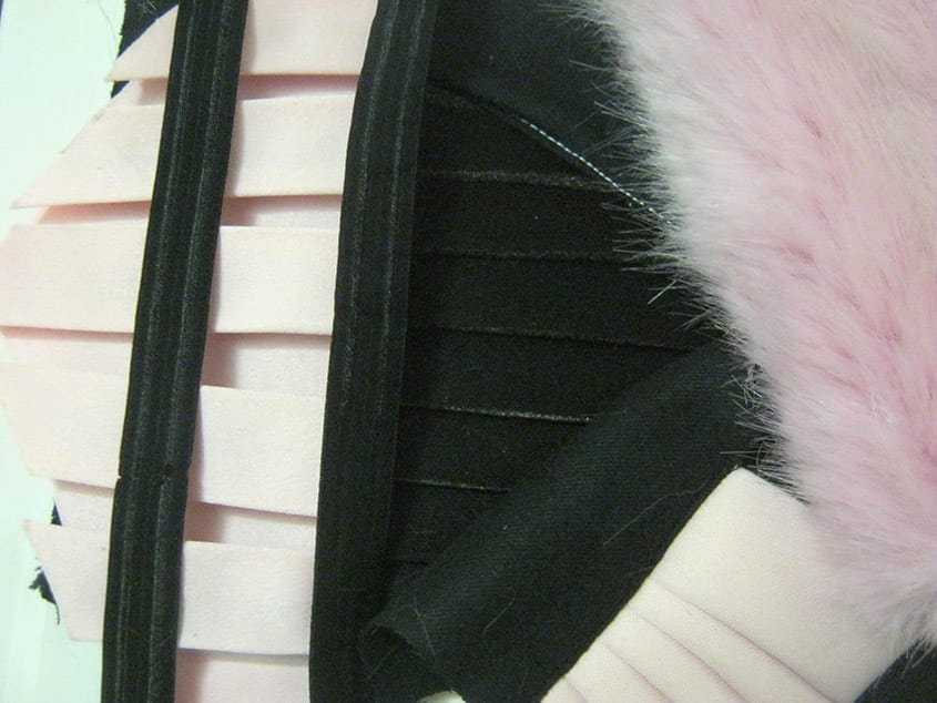 My collection is inspired by famous OCD sufferer Howard Hughes. He was a famous business tycoon, movie maker, and revolutionary aviator but also had a notorious playboy lifestyle dating some of Hollywood’s most glamorous women such as Katherine Hepburn, Ava Gardener, Bette Davis, and Jane Russell among others. While making the movie ‘The Outlaw’ with Jane Russell he designed a bra for her which became a key focus for my collection as it allowed me to use diverse materials such as a type of neoprene used in bra foam lining.