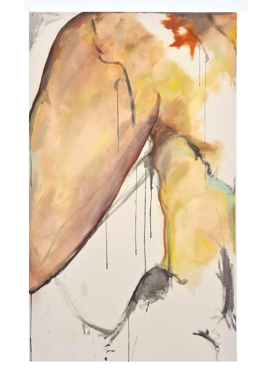 Molly Kane explores the phenomenology of the body through a personal lens shaped by chronic pain, social anxiety and the struggles of forming an identity. This project is rooted in a desire to externalize invisible internal stress and vulnerability using raw, gestural mark-making and unconventional materials, such as liquid latex.