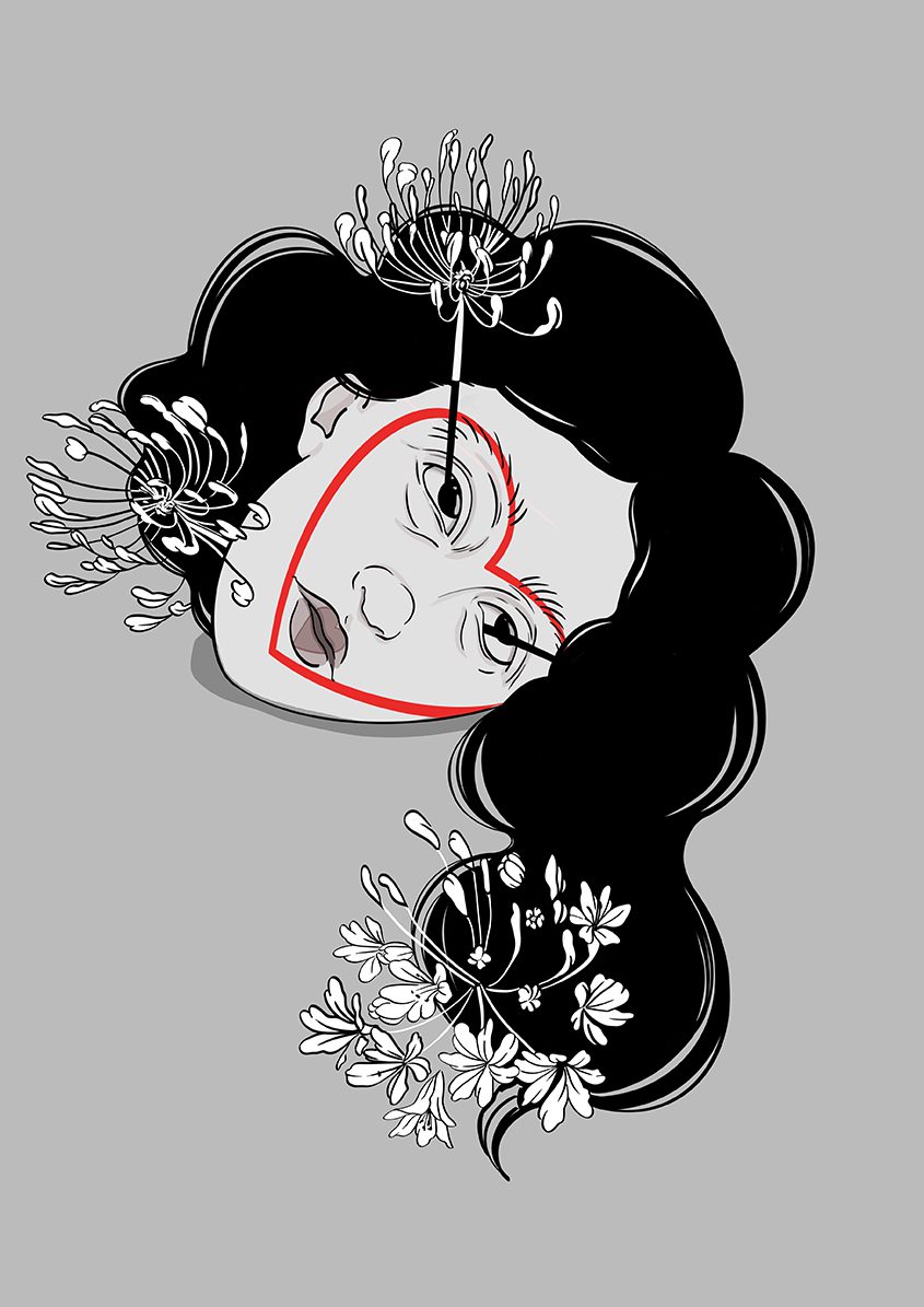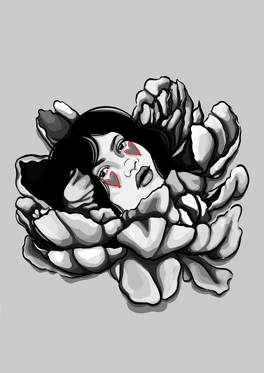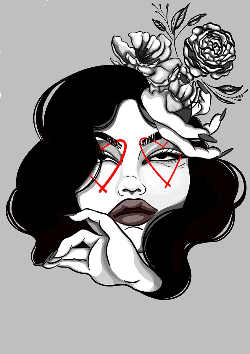 The main concept of my work is self exploration of my own femininity and growing into a young woman in today’s society. Throughout my work I wanted to explore my own personal journey through my struggles with mental health and self esteem. Although my pieces confirm to societal beauty standards when examined more closely there is a level of self exploration and the need to be desired. Being a woman in today’s society there is a pressure on us to fit certain beauty standards and levels of femininity to be seen desirable. Over the last 3 years I have worked with floral and feminine imagery which has helped me develop a better understanding of me and my art. I want my work to look aesthetically pleasing and beautiful to the eye but once you take a closer look there is a sense of self exploration and discovery. The use of hearts in my work celebrate the beauty of the feminine body which may be stigmatised. I have styled my pieces so that viewers can easily identify with the subjects.
