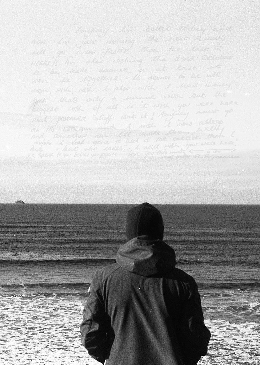 Molly’s work focuses on the intergenerational relationship between her parents, brothers and her through the lens of surfing and revisiting old memories.  A lot of her work has come from photographing her dad and brothers on film, recording sound, using old letters from her parents and old camcorder footage.